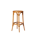 This classic bentwood bar stool features a round timber seat with elegant curved detailing through the legs and footrest. The refined half-circle supports beneath the seat and ring footrest add subtle character while maintaining a timeless, European bistro look.
