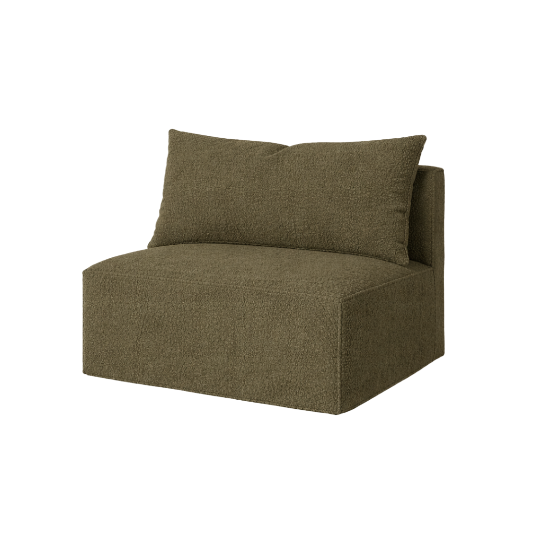 Our Olive Boucle Armless Single Seat is upholstered in a richly textured olive green boucle fabric, this plush piece offers both comfort and style with its deep seating and generous cushioning. The clean, armless silhouette ensures versatility—perfect for creating relaxed lounge areas at weddings, corporate functions, brand activations, and private parties.