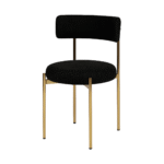 Our Boucle is the perfect event hire chair for your corporate event or sleek wedding featuring slim black legs and a black boucle padded seat and back cushion. Our Boucle chair offers such sophistication and class and allows you to match many colour tones with it. Our boucle dining chair is suitable for many occasions like weddings, gala and corporate events and intimate gatherings.
