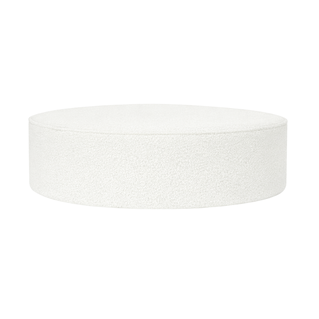 The White Bouclé Ottoman brings a touch of contemporary touch to any setting. Upholstered in richly textured white bouclé, it blends softness and structure with its cylindrical shape and refined piping detail. Perfect for lounge areas, weddings, or corporate events — it’s a versatile statement piece that elevates modern interiors with understated luxury. This larger 100cm ottoman is also available in a matching smaller ottoman.