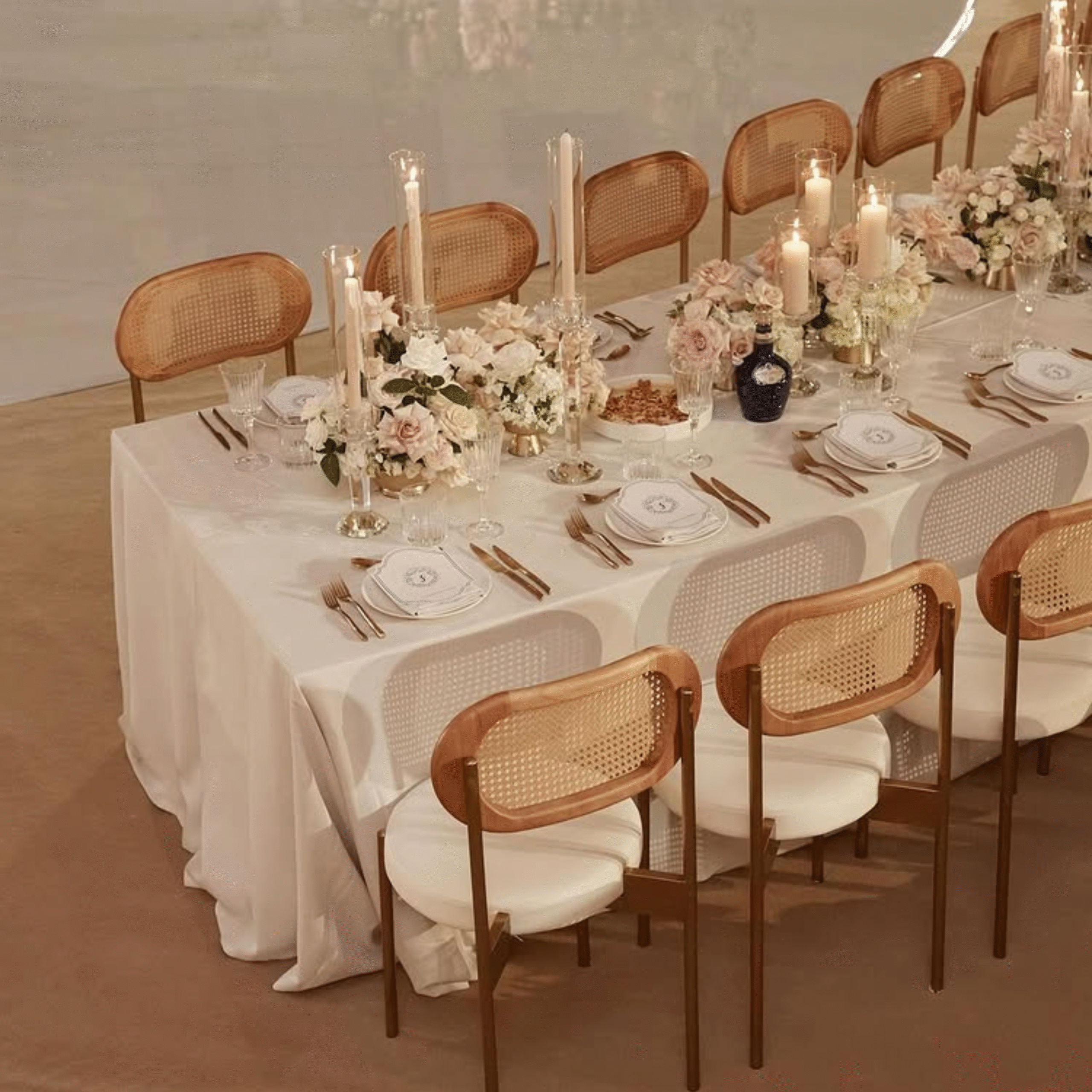 Thoughtfully proportioned, the slimmer cushion keeps the chair looking tailored and contemporary while still offering comfortable seating for long events. Its versatile aesthetic makes it an easy fit for weddings, private dining experiences, brand activations, and styled corporate events where detail matters.