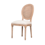 The Rattan Contempo Chair strikes the perfect balance between warmth and modern refinement. The gently curved cane backrest adds texture and character, while the brushed gold frame introduces a subtle metallic edge that elevates the overall silhouette. Finished with a streamlined white velvet seat cushion, the design feels light, polished, and effortlessly elegant.