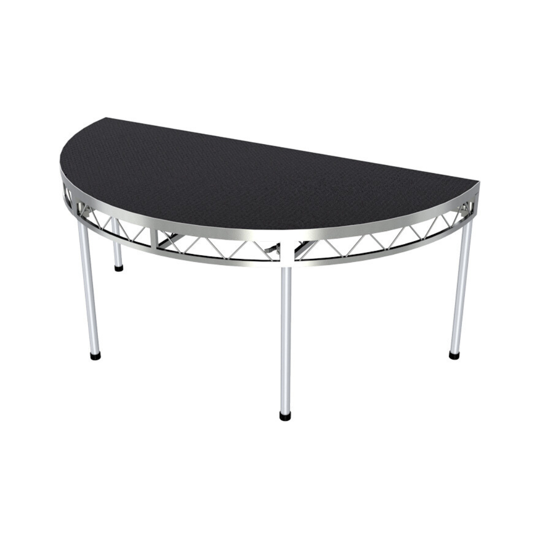 Constructed with a sturdy aluminium frame and finished with a durable non-slip black stage surface, this deck provides a stable and secure platform suitable for indoor and outdoor use. Its modular design allows it to be used as a standalone feature or seamlessly integrated with straight stage decks to form larger stage layouts.