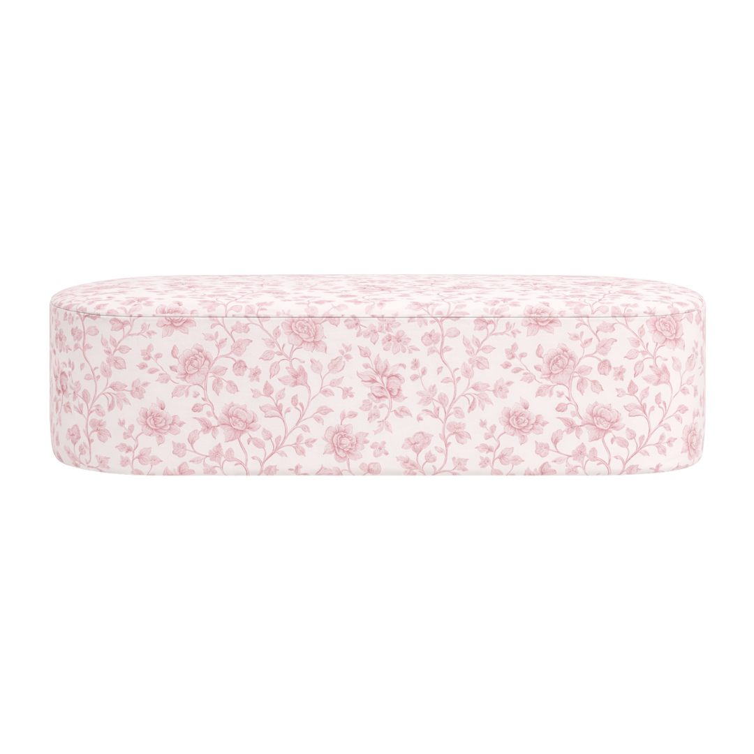 Delicate and romantic, our pink floral bench toile print captures the essence of timeless elegance. Featuring a soft floral motif inspired by classic French design, this piece adds a graceful, feminine touch to any event setting.