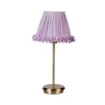 This lilac table lamp has a beautiful pleated design and a ruffled fabric design around the bottom. The colour is soft and beautiful allowing it to tie in with many other purple and pink shades.