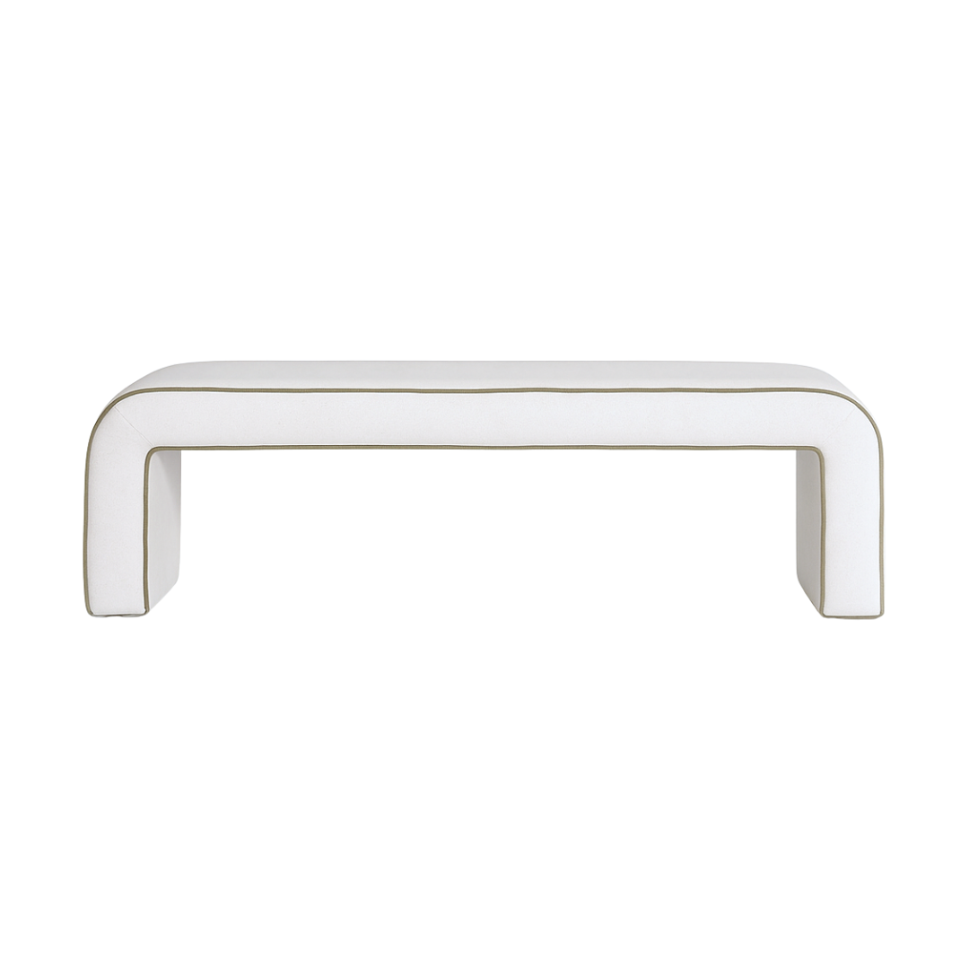 The Piper ottoman bench brings a calm, modern confidence to any setup. Its long, low shape feels intentionally sculpted, giving it a sleek presence without adding visual weight. The gentle sage green piping traces the frame with a clean, structured line, keeping the design sharp and contemporary.