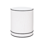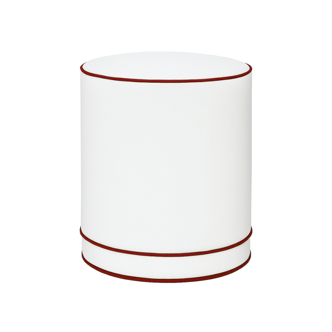The Piper Ottoman embodies contemporary sophistication with its clean lines and refined detailing. Wrapped in a smooth white linen fabric and finished with deep red piping, this piece adds a fresh, modern touch to any interior or event setting.