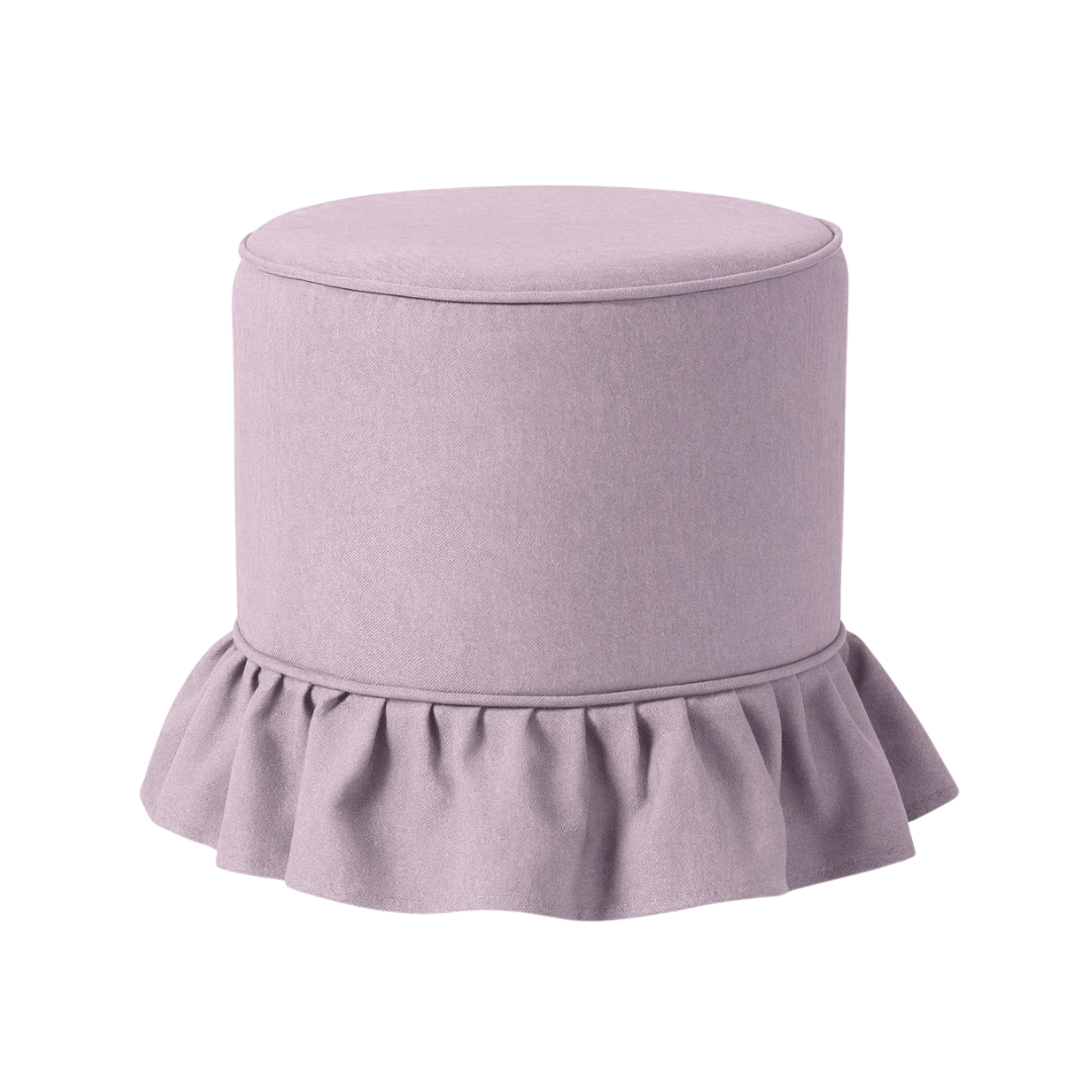 The Lilac Ruffle Skirt Ottoman is a charming statement piece that combines vintage flair with modern sophistication. Wrapped in a soft lilac fabric, its tailored cylindrical form is accentuated by a flowing ruffle skirt – adding a sense of movement and whimsy.