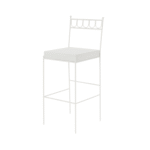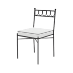 The Soho Chair combines sleek geometry with a timeless Mediterranean vibe. Crafted with a slender white metal frame, its design showcases clean straight lines softened by rounded finial accents and a supportive backrest detailed with rectangular and semi-circular shapes. The seat and back cushions, finished in a crisp white linen fabric add subtle texture and elegance. Its refined curves and airy silhouette evoke a relaxed coastal charm, making it the perfect piece for both indoor and outdoor settings inspired by Mediterranean living.