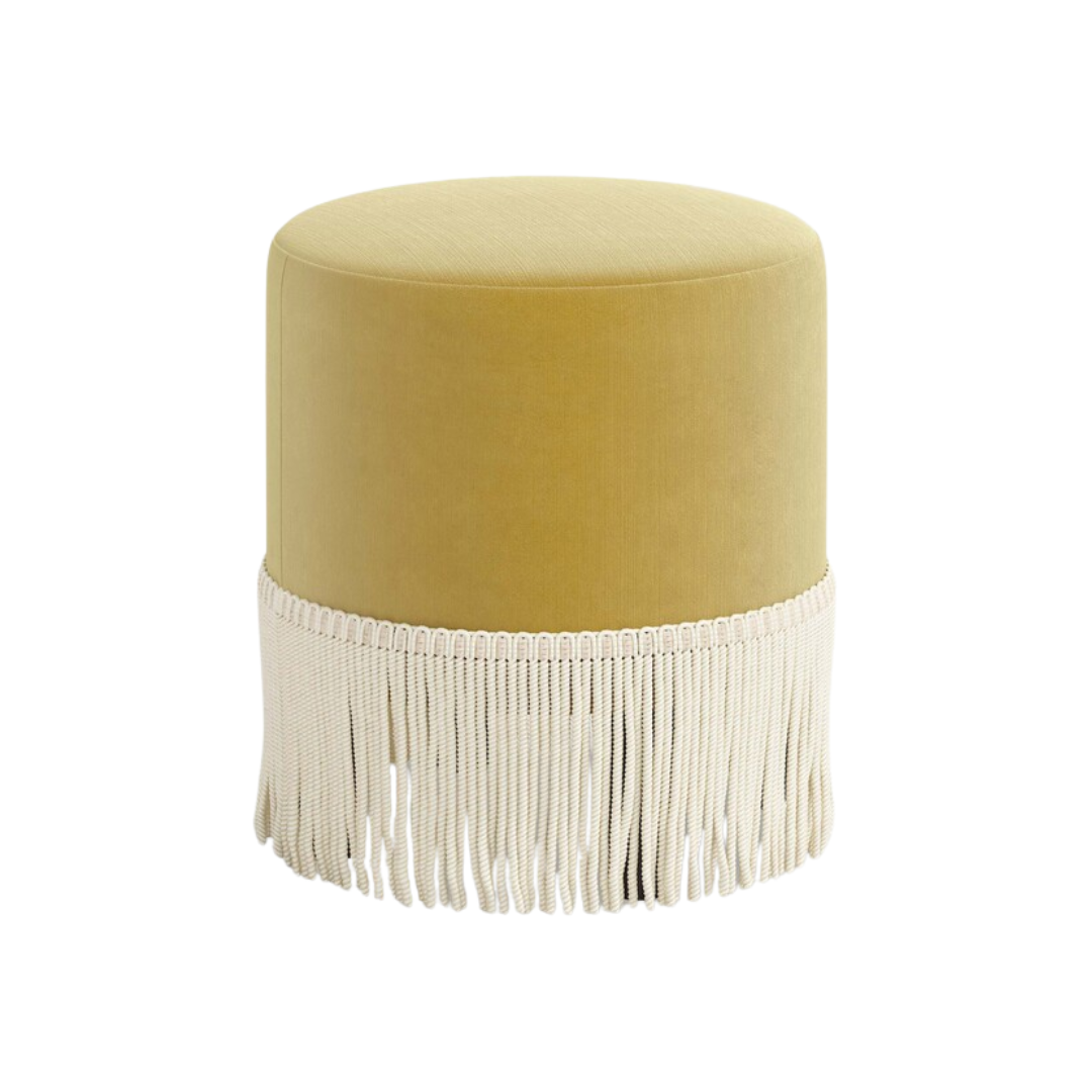 The Yellow-Mustard Tassel Ottoman brings a bold yet elegant statement to your event styling. Upholstered in a rich mustardy yellow linen fabric, this piece exudes warmth and sophistication, perfectly complemented by its cream tassel fringe detailing. The soft cylindrical form offers both comfort and luxury, making it a standout accent in any setting.