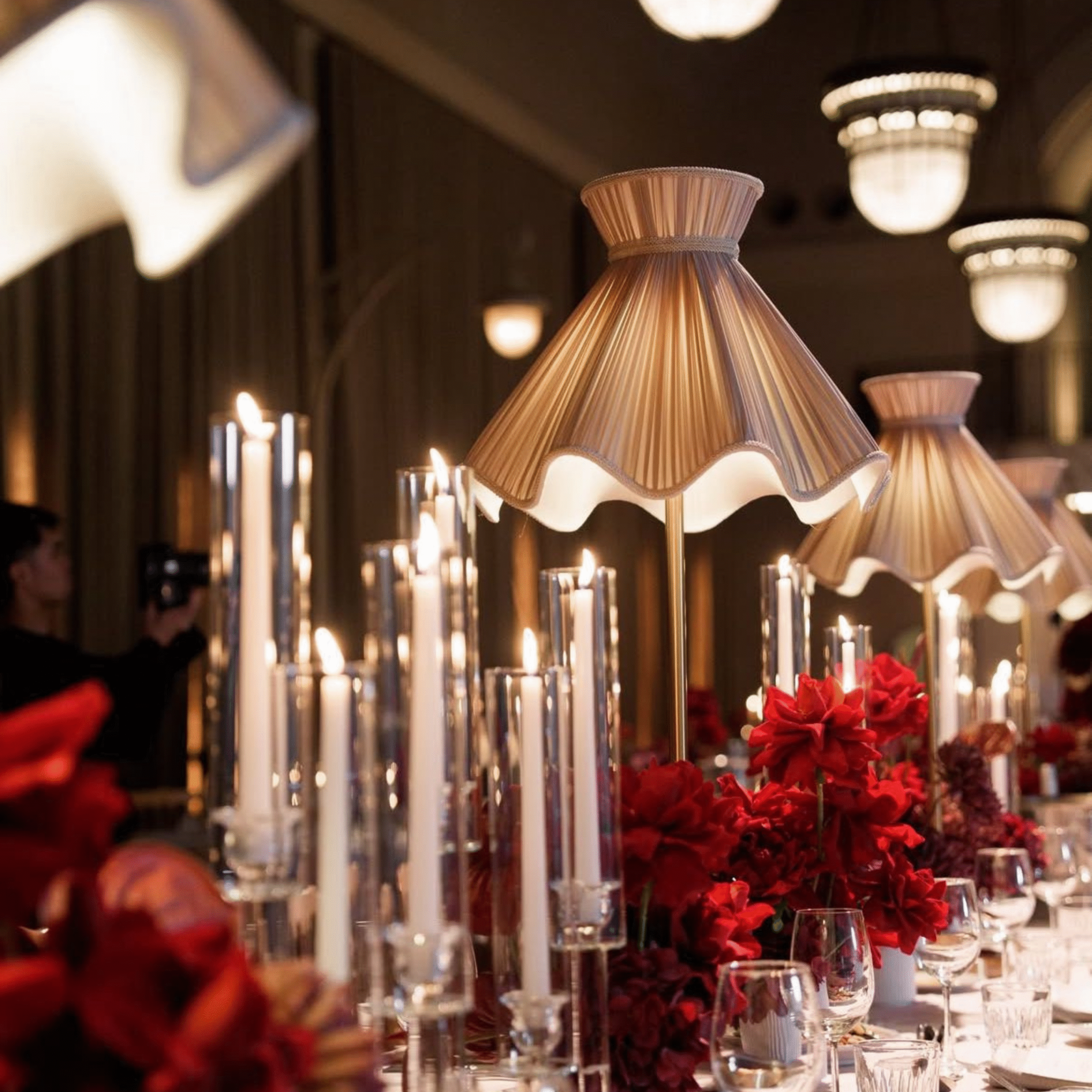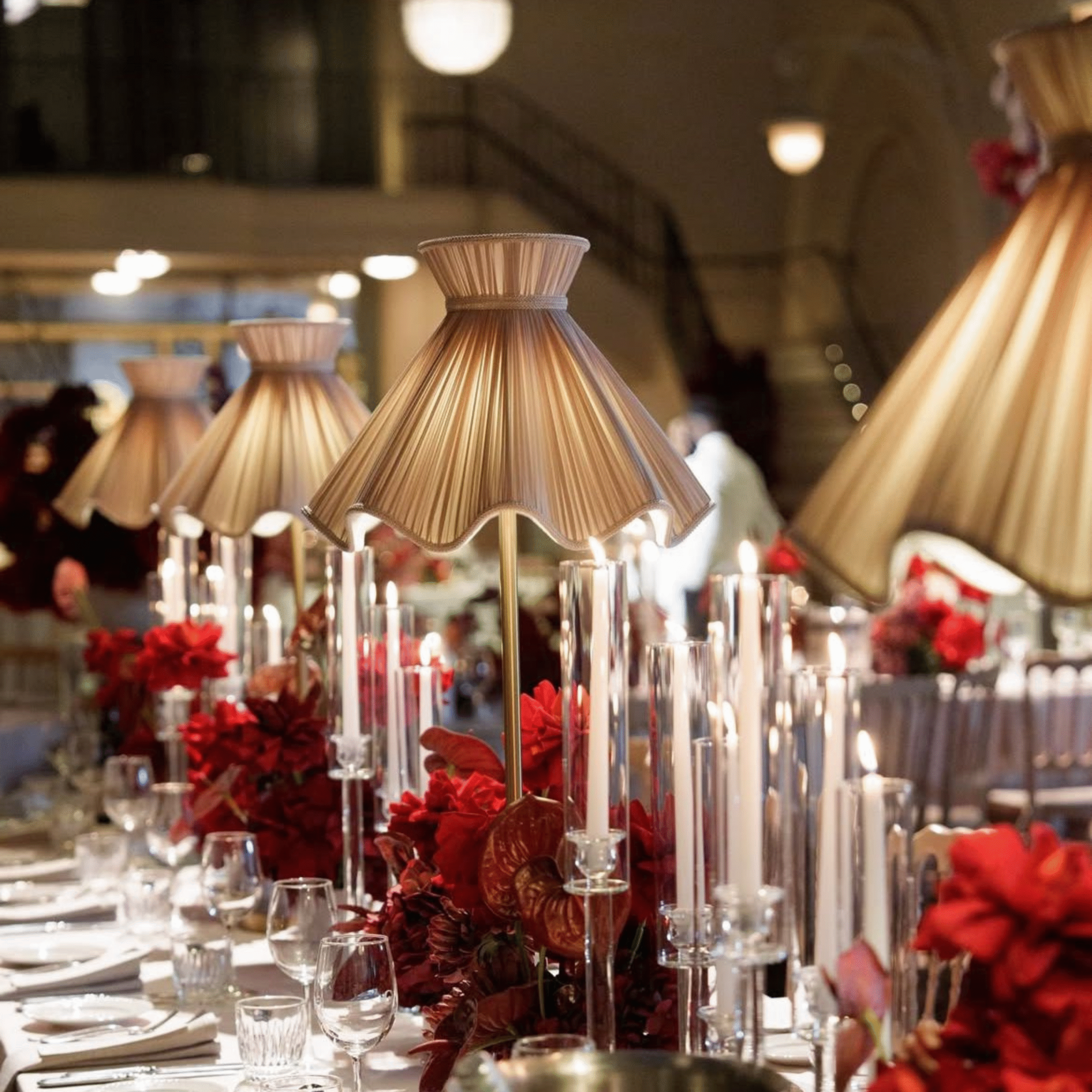 Elevate your table styling with our 95cm Tall Champagne Dress Table Lamp – a showstopping centerpiece that exudes charm and vintage sophistication. Featuring a pleated champagne-toned lampshade with a scalloped edge and decorative trim, this lamp sits atop a brushed gold base that adds a touch of glamour to any event setting. Perfect for gala dinners, weddings, and luxury soirées, it brings warmth and elegance to long dining tables or intimate lounge zones.
